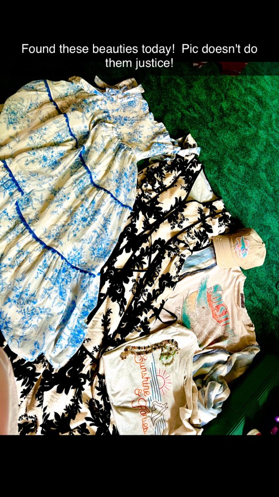 I then went into 3 local shops where I found 2 pretty dresses, t-shirt, hat and bracelet and necklace.